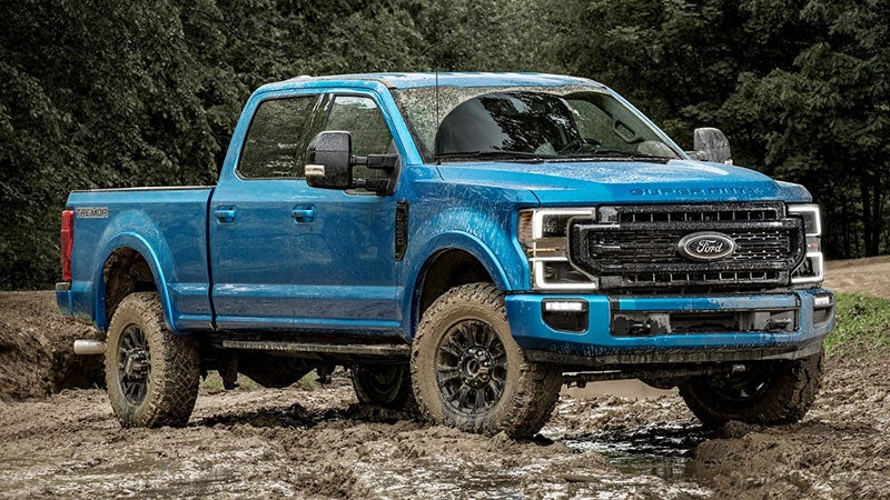 The 2021 Ford Super Duty available Tremor Off-Road Package features Best-In-Class* Water Fording up to depths of 33 inches.** Extended vent axle tubes help you go deeper and the Tremor’s limited-slip front differential and Rock Crawl mode can help push you even further.