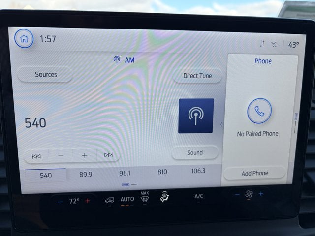 • SYNC 4 -inc: 12" center display BluetoothĀ® dual USB ports enhanced voice recognition electronic climate control and connectivity package which includes information on demand panel wireless Apple CarPlay and Android Auto compatibility cloud connected 911 Assist digitial owner's manual and conversational voice command recognition